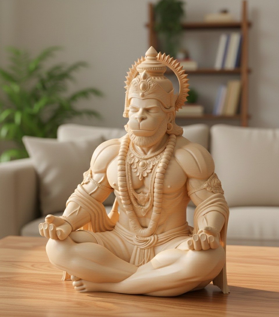 Hanuman Ji is depicted in a meditative posture, symbolizing peace, strength, devotion, and protection. The idol fits beautifully in any living room, office desk, home temple, car dashboard, or gifting setup.