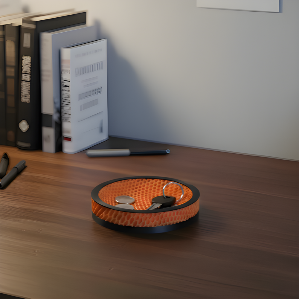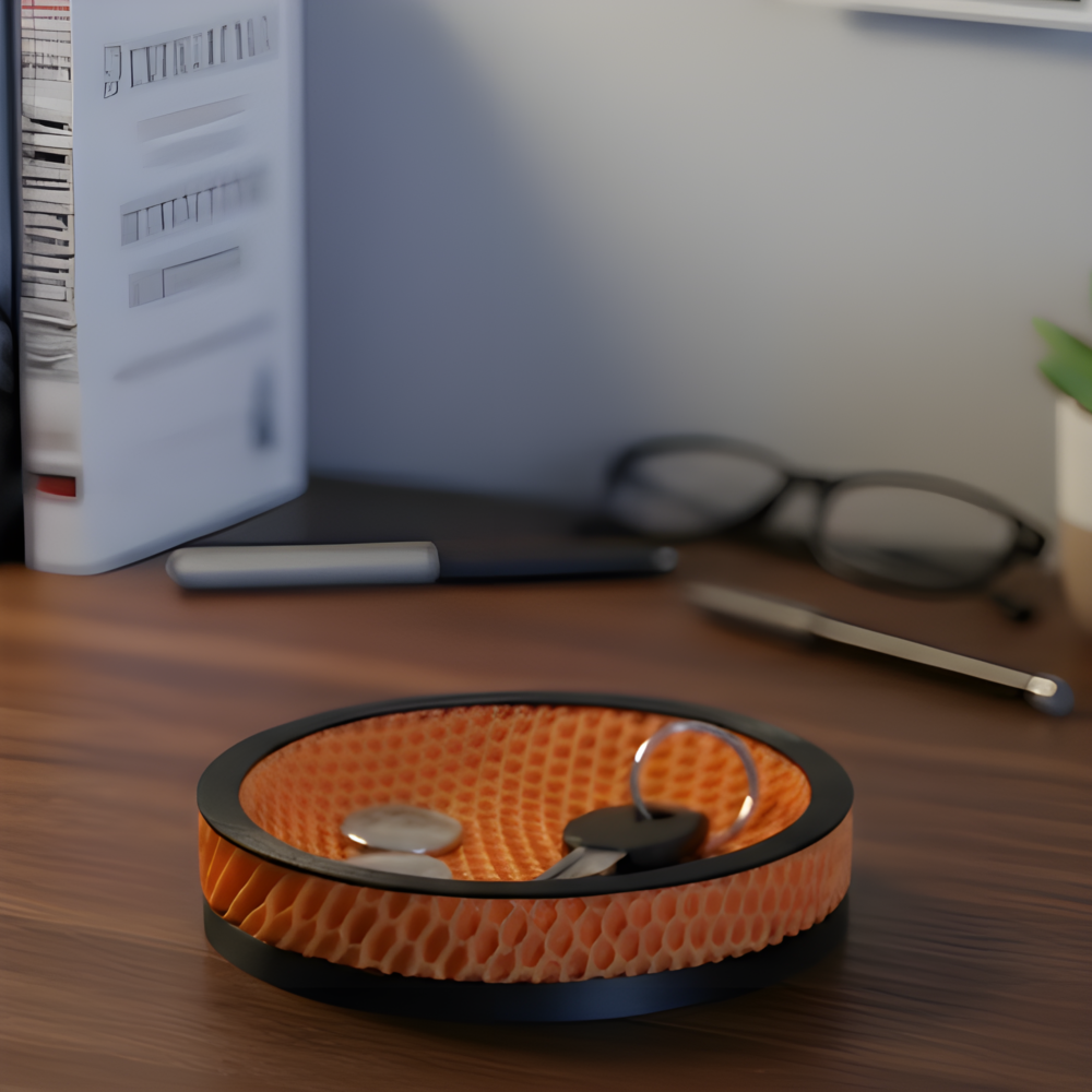 The HexaGrid Catch-All Tray is a beautifully crafted 3D-printed organizer featuring a bold honeycomb structure and smooth black rim. Measuring 150mm in diameter and 31mm in height, it’s the perfect size for holding your small everyday items — keys, coins, jewelry, or office accessories.